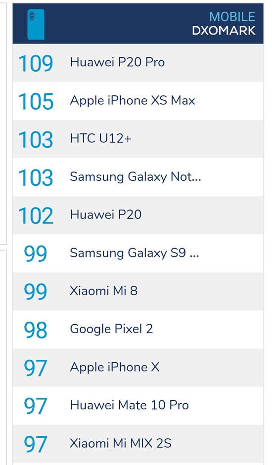 DXOMARKでもp20 pro以外にも負けてるやん