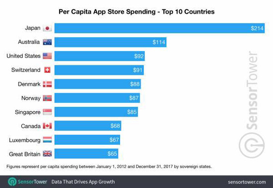 これが一人あたりの課金額ランクやぞ、韓国ないからおかしいと思ってたねん