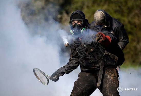フランスの暴動で催涙弾をラケットで打ち返した方が話題だけど、コレは2018年12月ではなく2016年6月暴動の写真(一枚目)