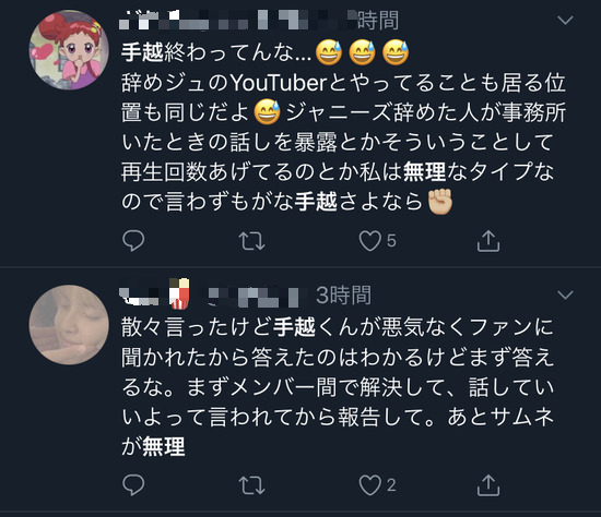 いや、この程度で離れる奴よくこれまで手越のファン出来たな