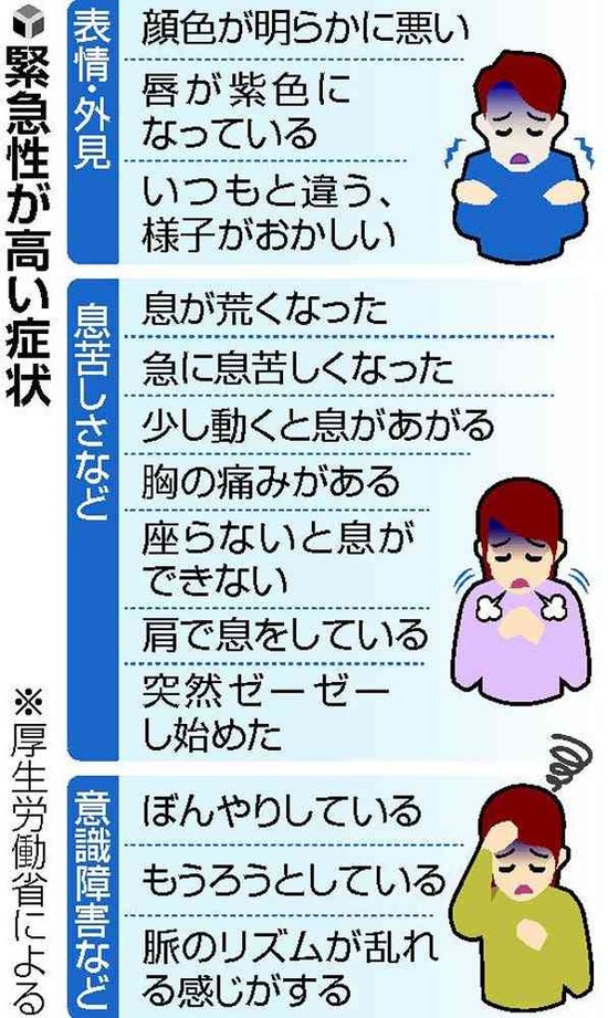 こういう症状が出た時点で入院中なら即対処してもらえるかもしれないけど、自宅では救急車を呼んでも間に合わないのでは…