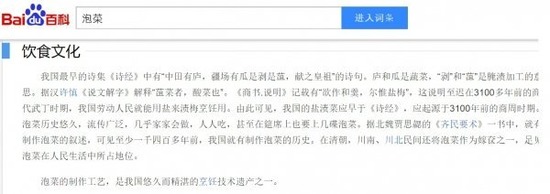 中国最大のポータルサイト百度は、最近百科事典サービス百度百科で「キムチは韓国の悠久の文化遺産の一つ」とキムチの起源は中国という主張を展開した。