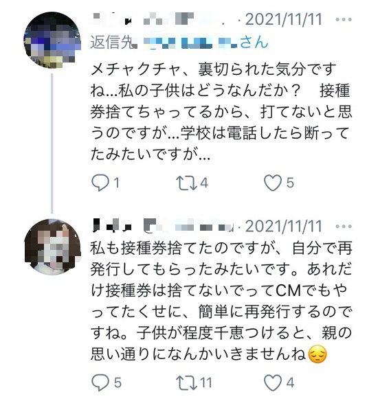 ワイが接種会場業務しとった時に3人くらい涙目で親に接種券捨てられたって女の子おったで
