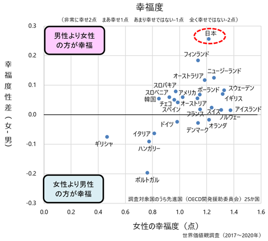 日本女性の幸福度は高いって調査結果があるよ
