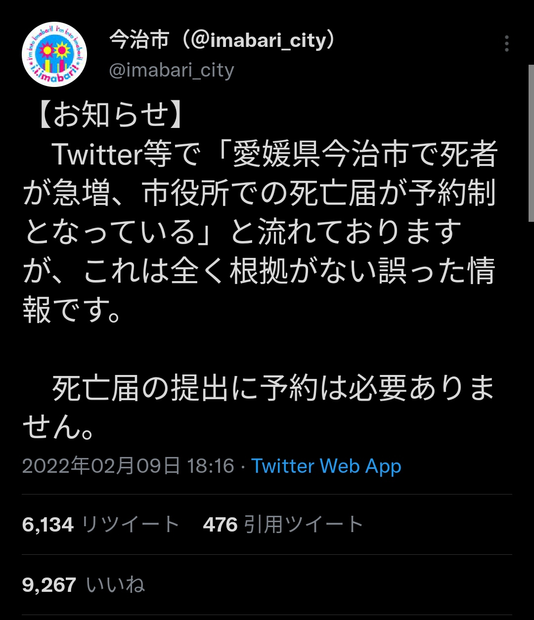 今治市が公式に否定した模様