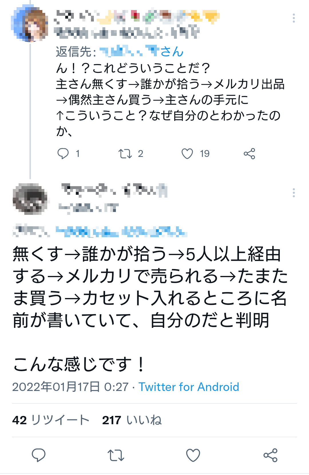 なくした後五人以上経由したってなんで分かるねん