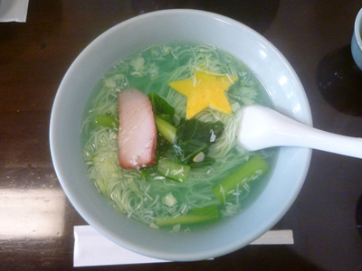 10数年前に調べた際には、ここに限らず青いラーメンは割とあるようで、