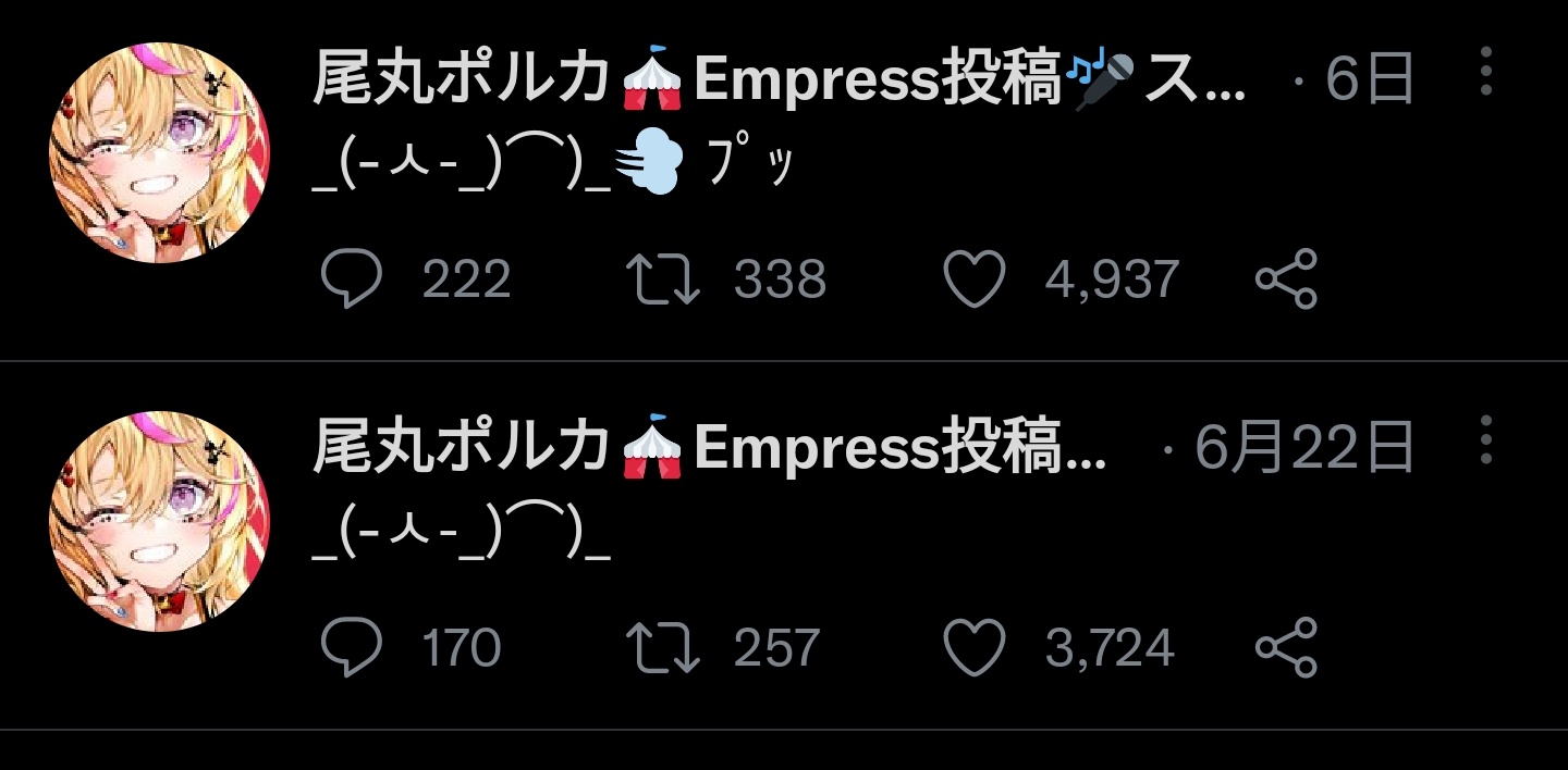 ポルカがタイミング悪くオナラのツイートしたから