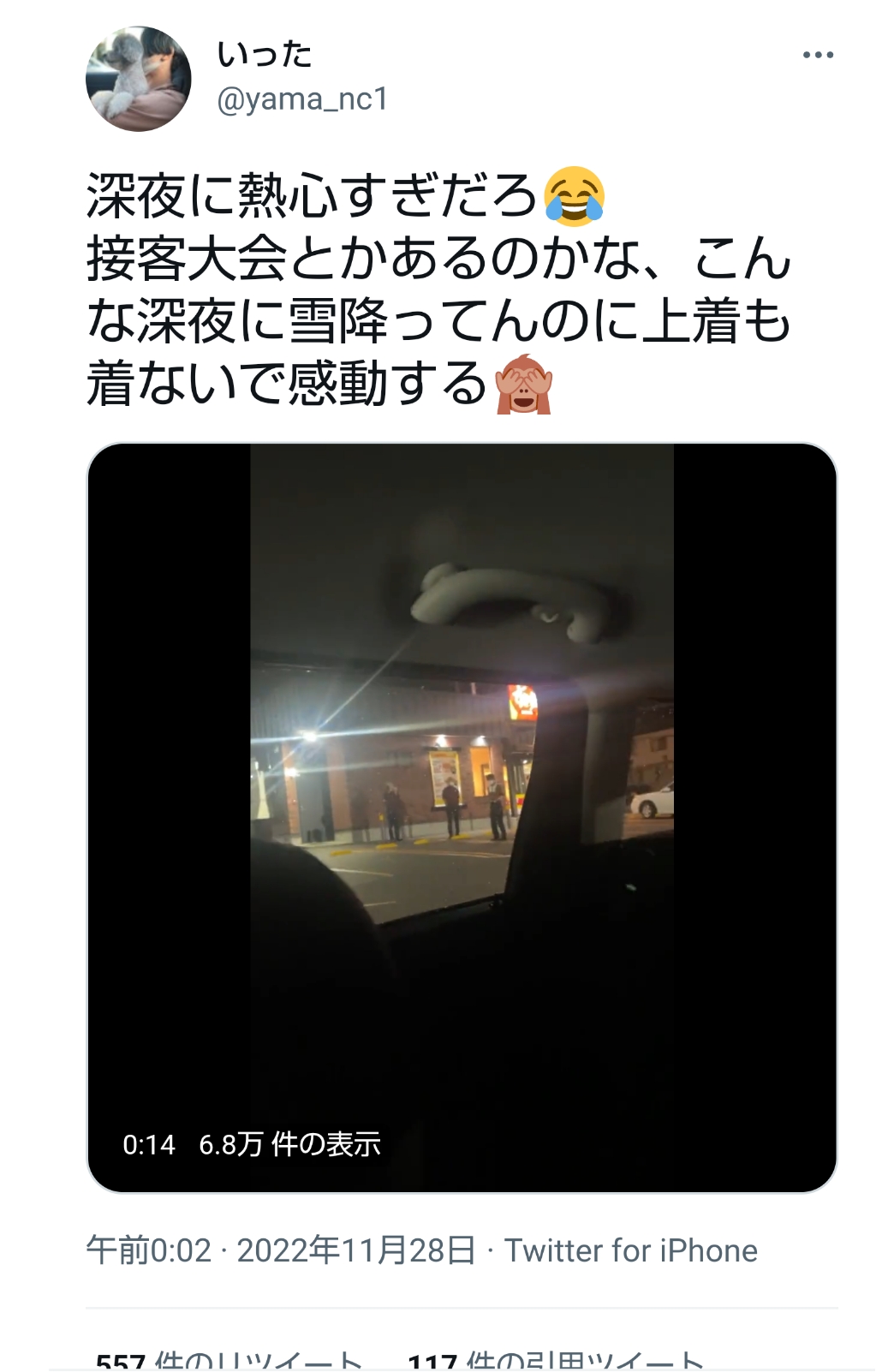 もう雪降っとるんか