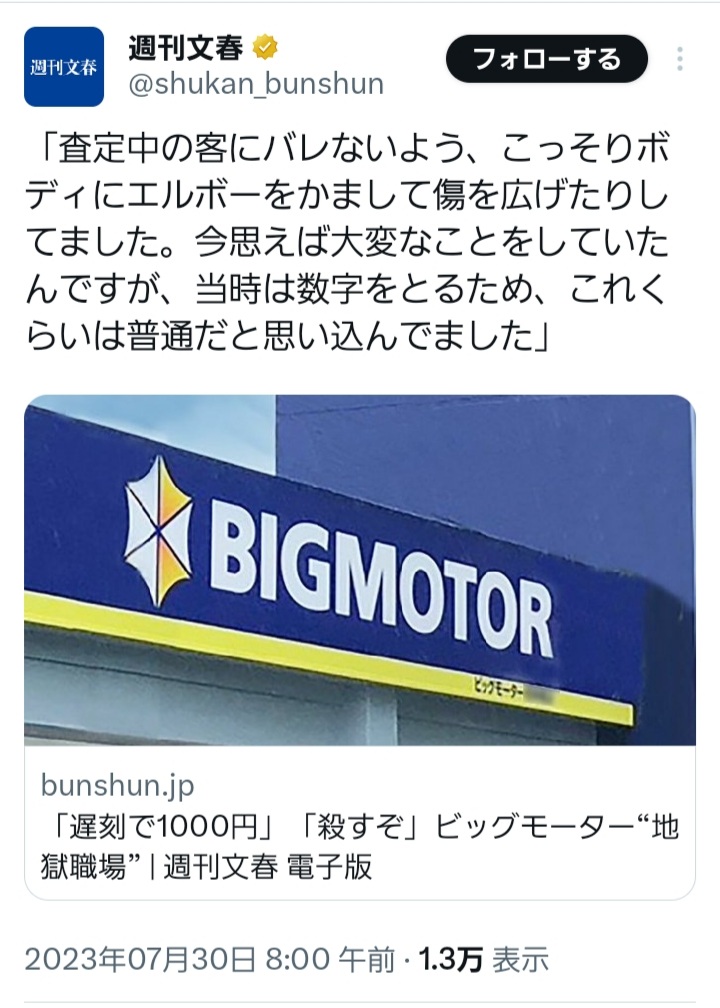 今のビッグモーターに残るってことは会社の責任を背負いお客様に誠心誠意対応しますってことやからな