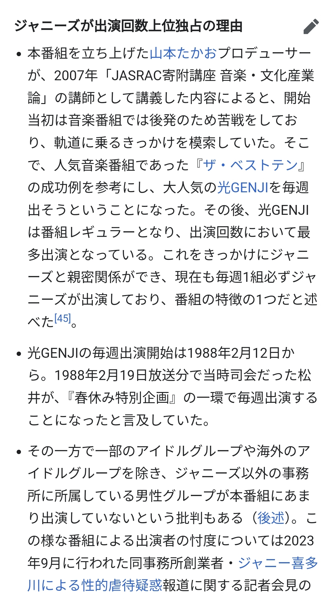 Mステは元々ジャニーズの為にできたようなもんやからな