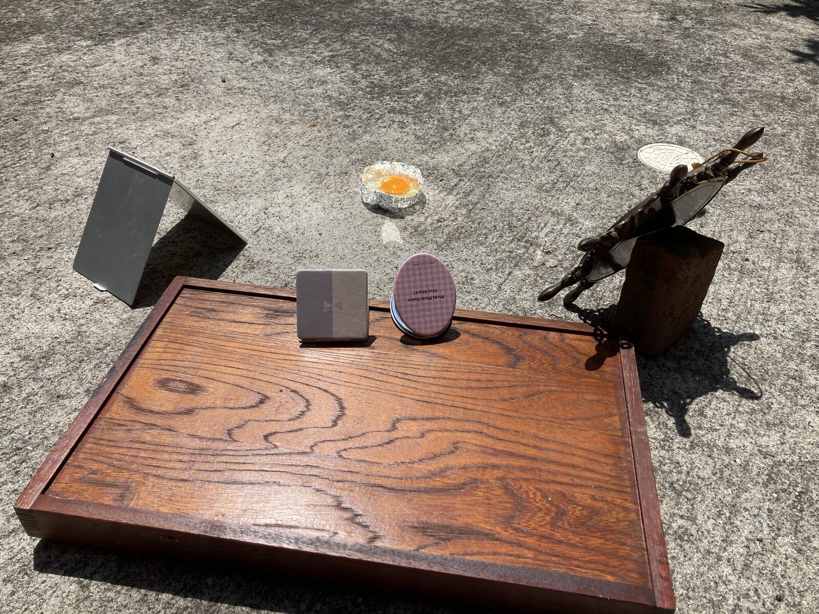 傘の内側にアルミホイル貼った物使ってもっと光を集中させないとあかん