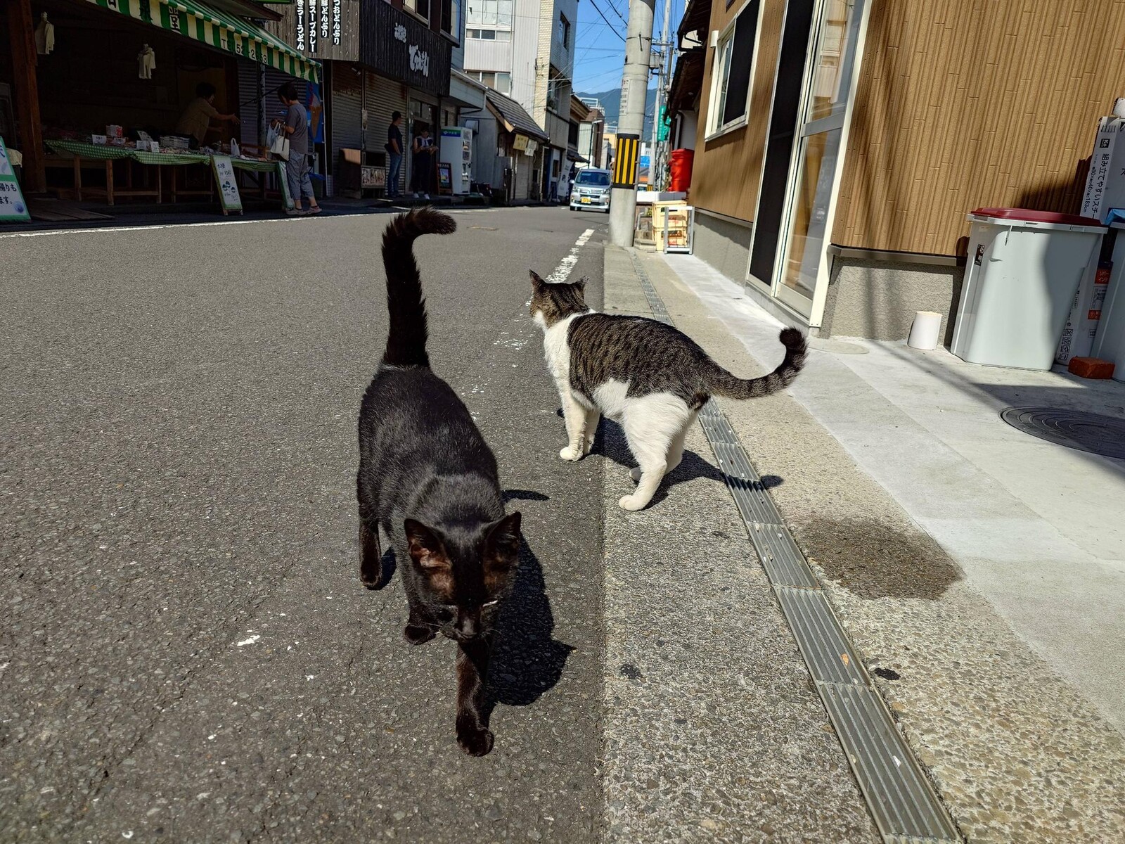 まだ人も少ないし交通量もないからネッコものんびり道路で寝転がったりしてたよ
