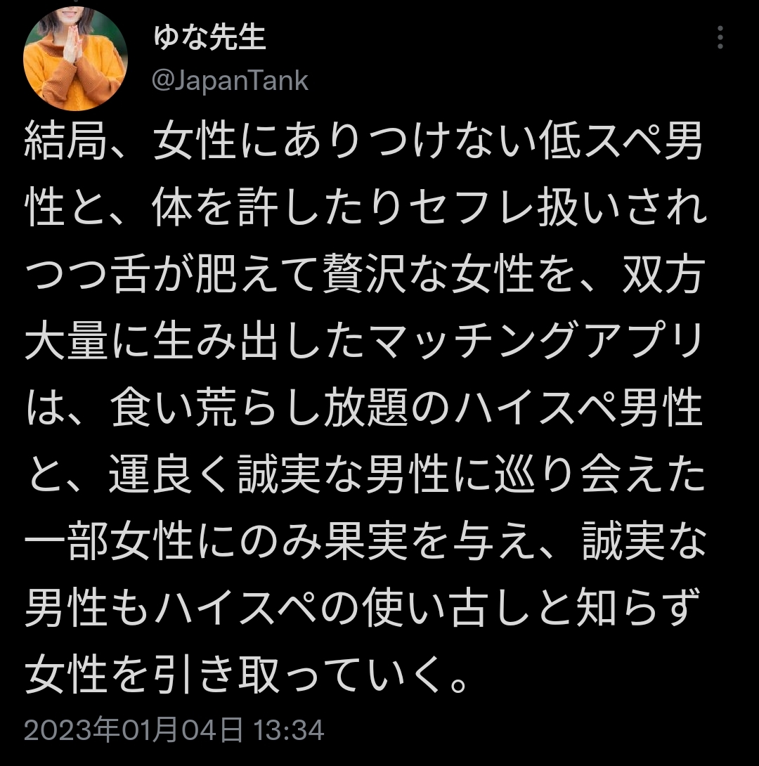 マッチングアプリはほんと男女合わせてハイスペ男しか得しない地獄のアプリでしかない
