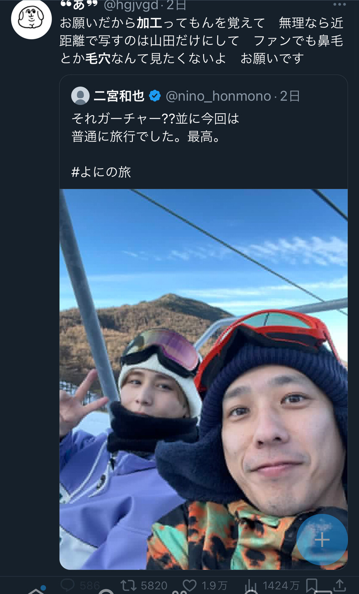 ファンでもってファン以外二宮が鼻毛で出ようが髭生やしてようが興味無いんやが