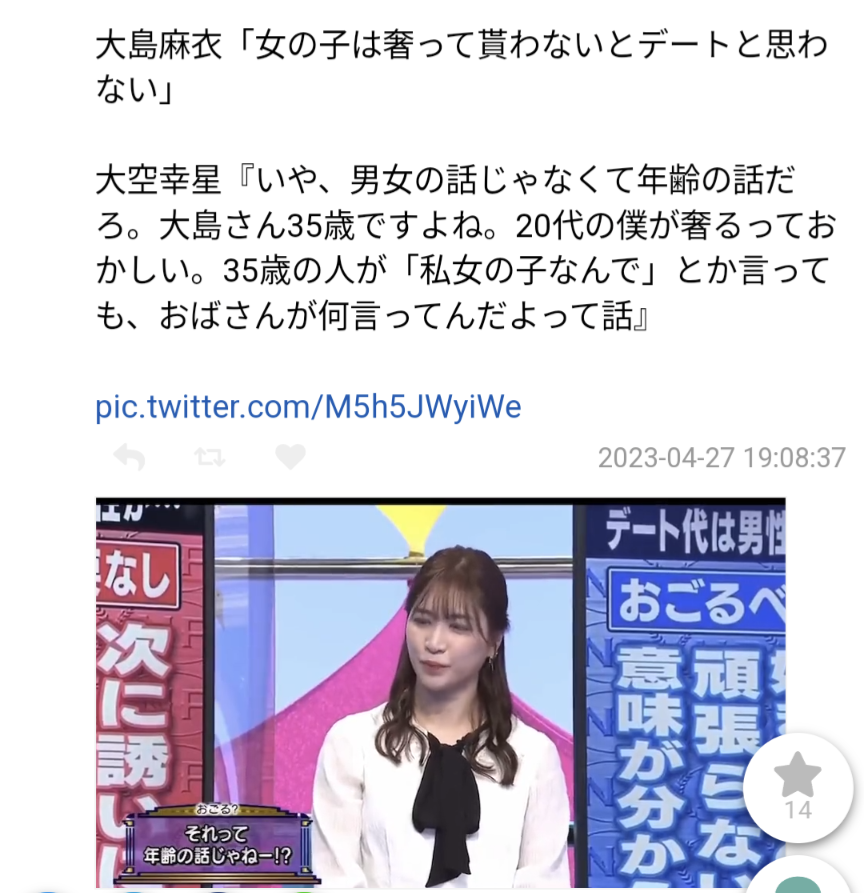 デートは男が全部出すべきみたいなネタが盛り上がったときに