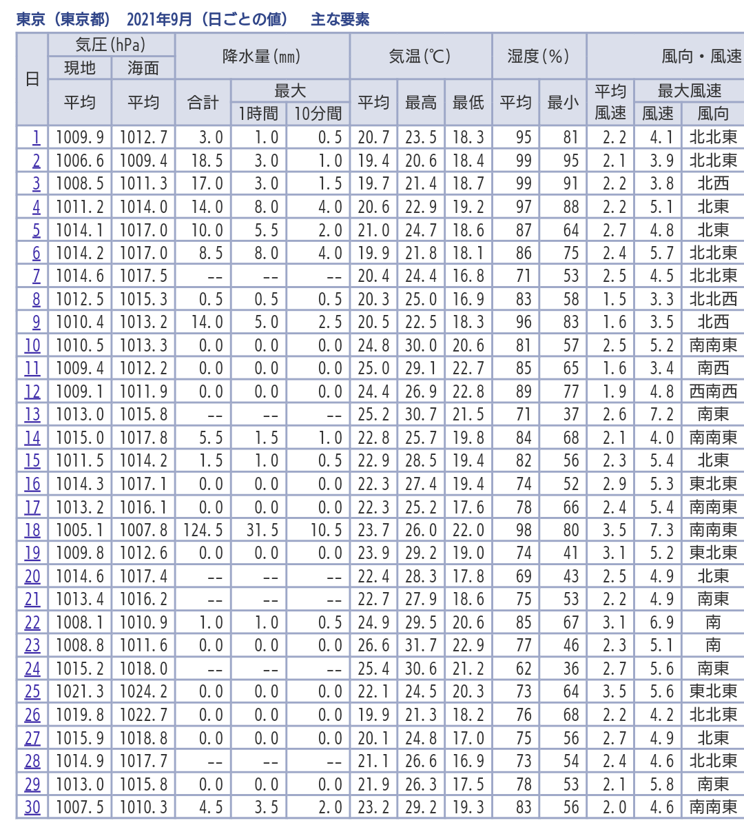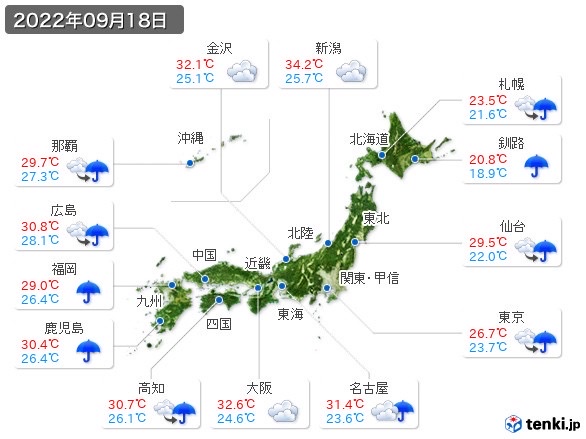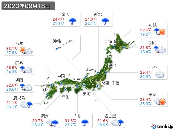 最高気温だけ見ると9月前半までは割と30度超えててそんなに今と変わらないんだな