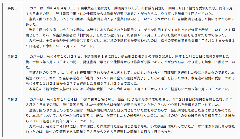 今回指摘されたのは動画じゃなくてイラストや動かし方のモデリングの修正を無償でやらせていたこと