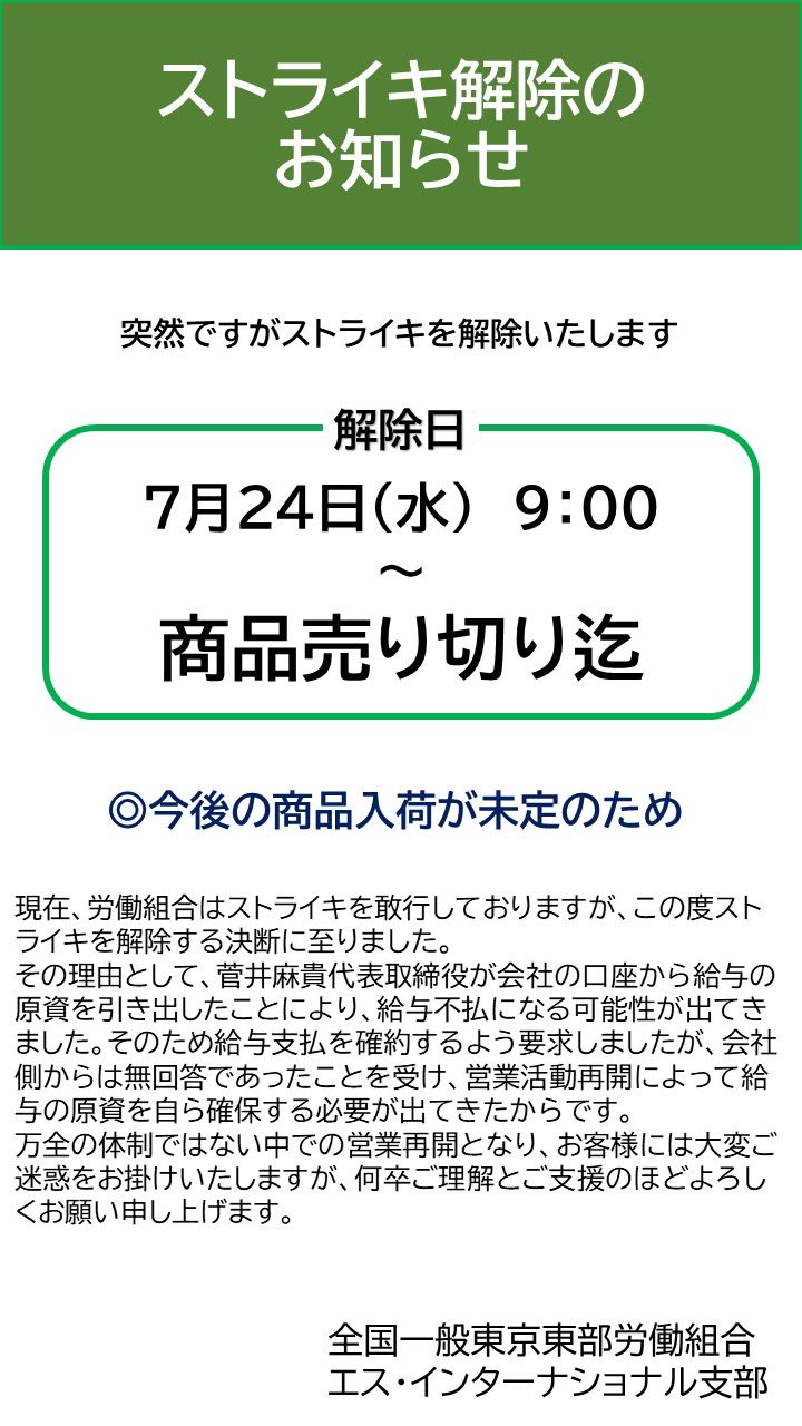 この件に関してはストが原因で破綻したわけじゃないだろうに…