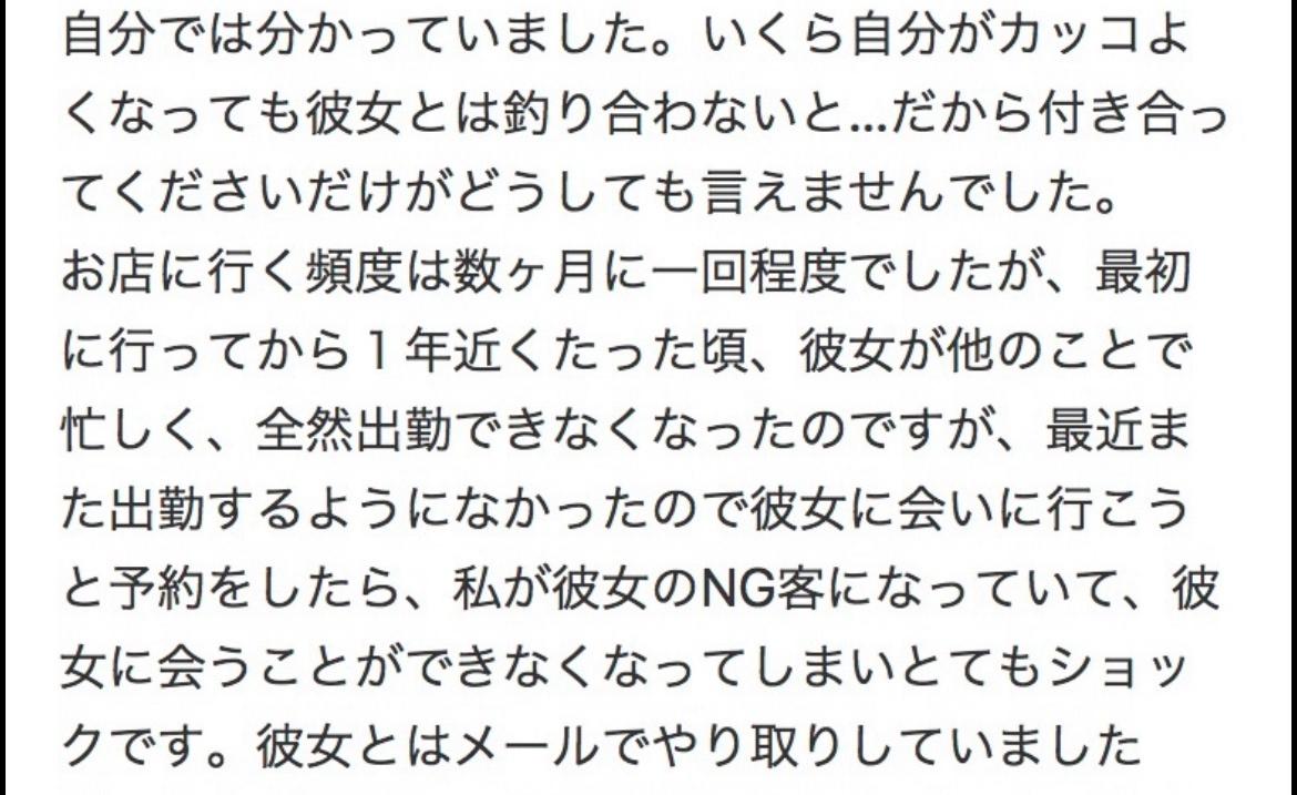 ガチ恋客「それでもガチ恋して通ったらワイのためを思って出禁にされたんや…😭」