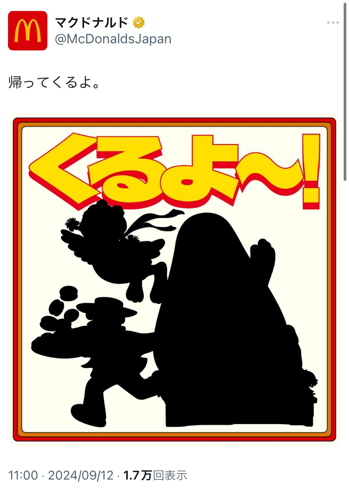 この前モバイルオーダーのアプリ起動したら無言のグリマスがドンと表示されて怖かった
