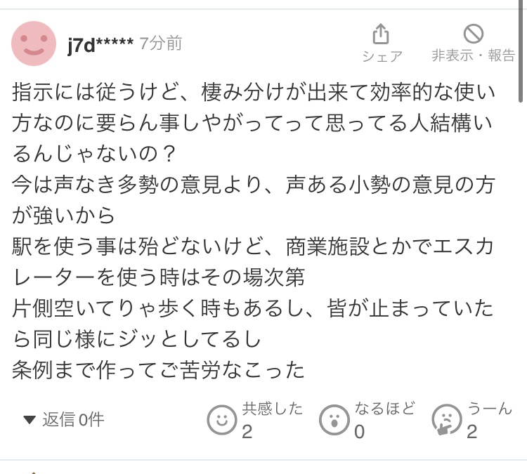 コメント欄でエスカレーター歩きおじさん発狂