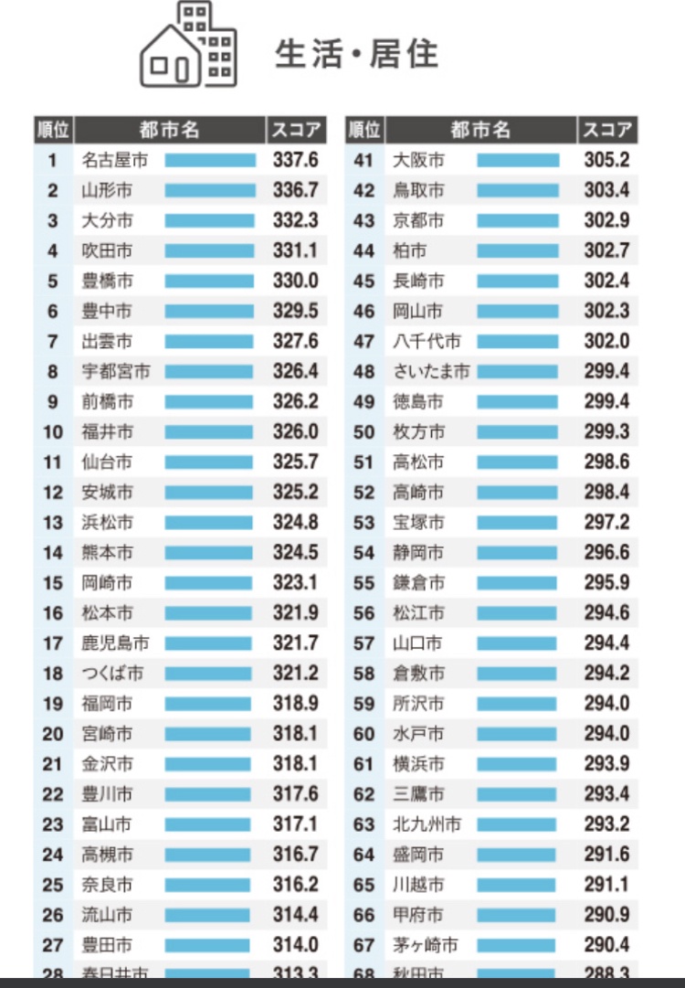 確かに、山形が2位はない。少なくとも、日本海側の街が上位になるのは感覚的にない。冬なんてほとんど雪かきばかりの生活になるのに、それがクオリティーが高いとは言えない。