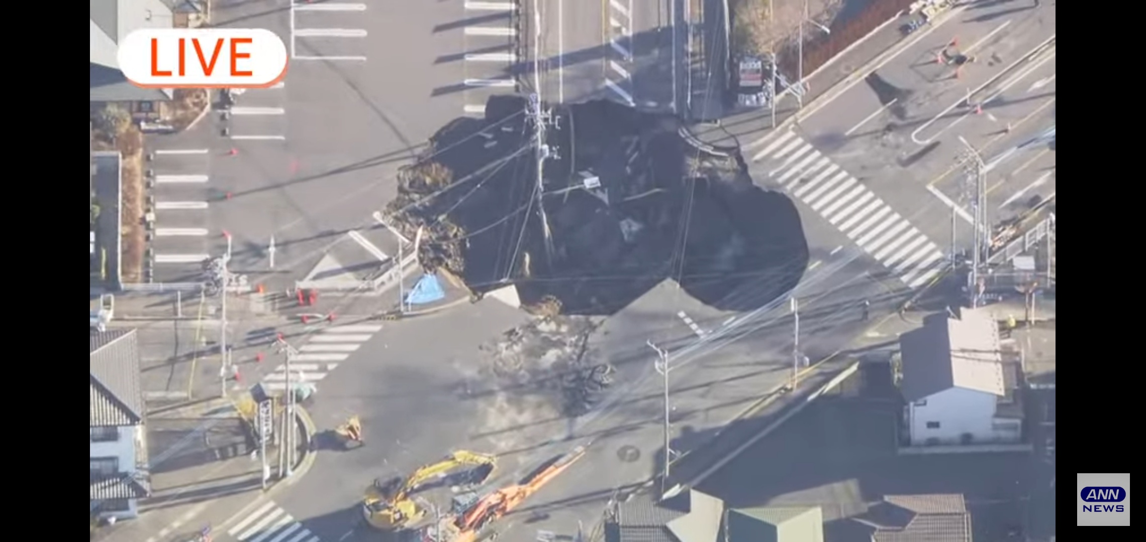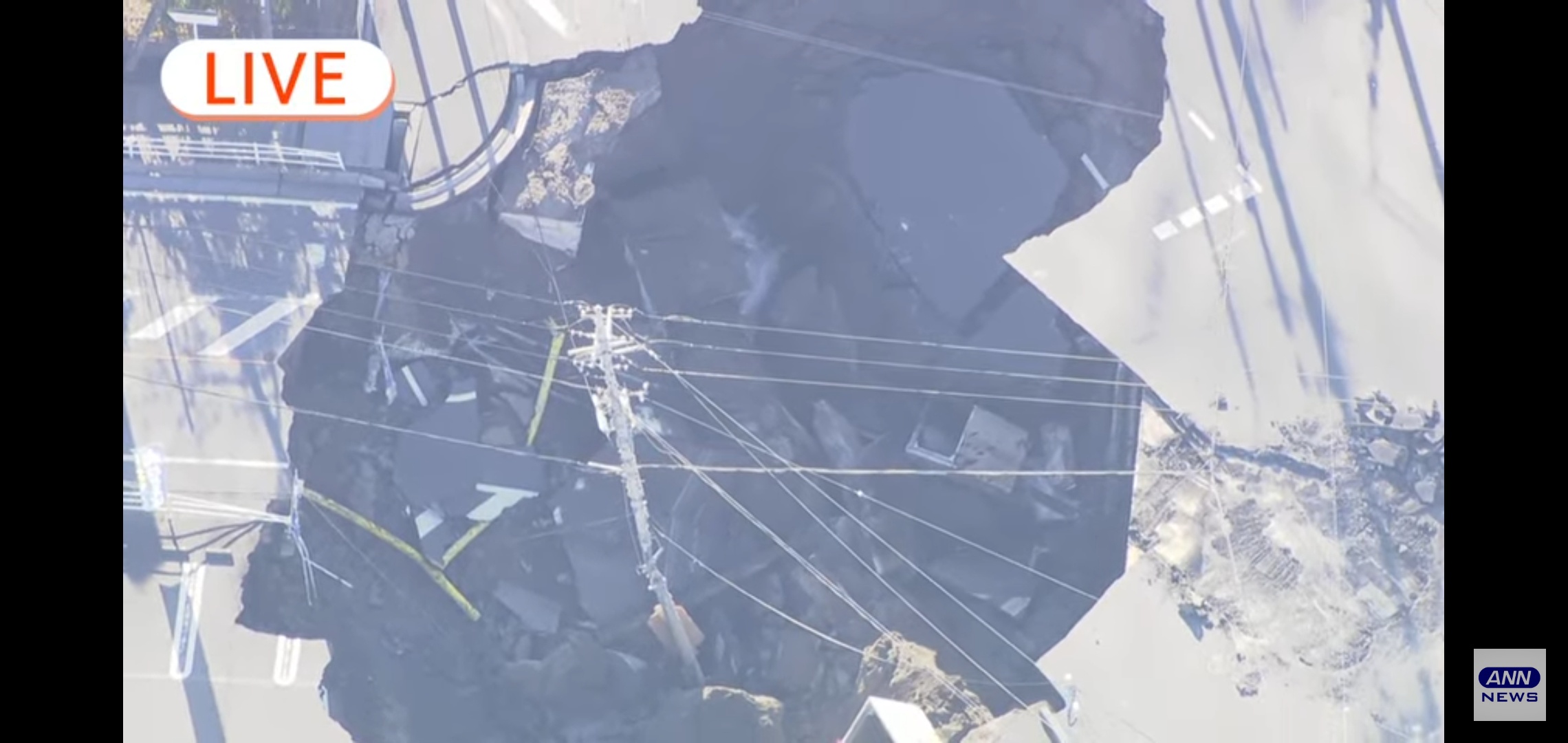 単に穴と一緒に落ちたけど両隣の電柱と線で支えられて立ってるだけよ