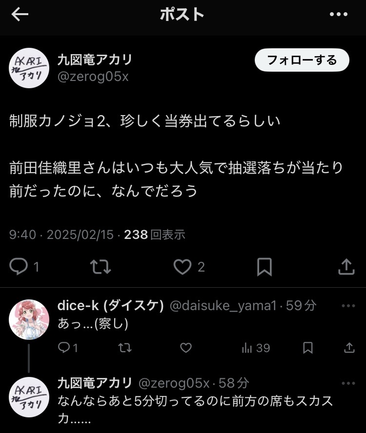 前方の席ガラガラってことはガチ勢にチケット捨てられてるんだよな…