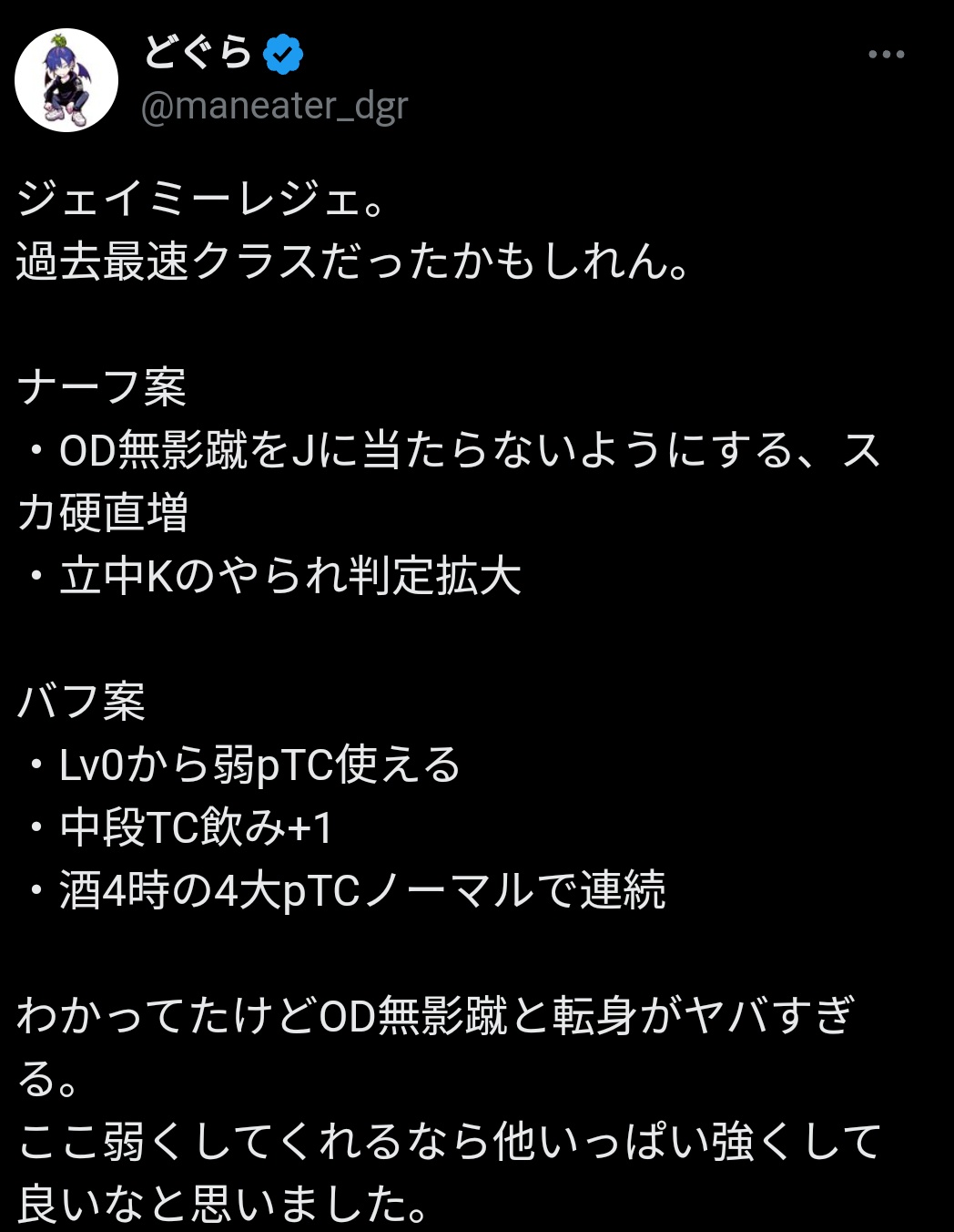 あんま強くないって評価のキャラが持ってる壊れ技をナーフした方がいいと言ったらこうなった