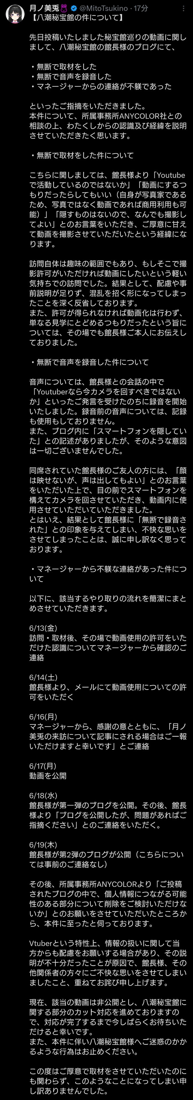 >今後、にじさんじからの取材は受けません。二度と来るなよ。お前らみたいなクズは相手にしないぞ。