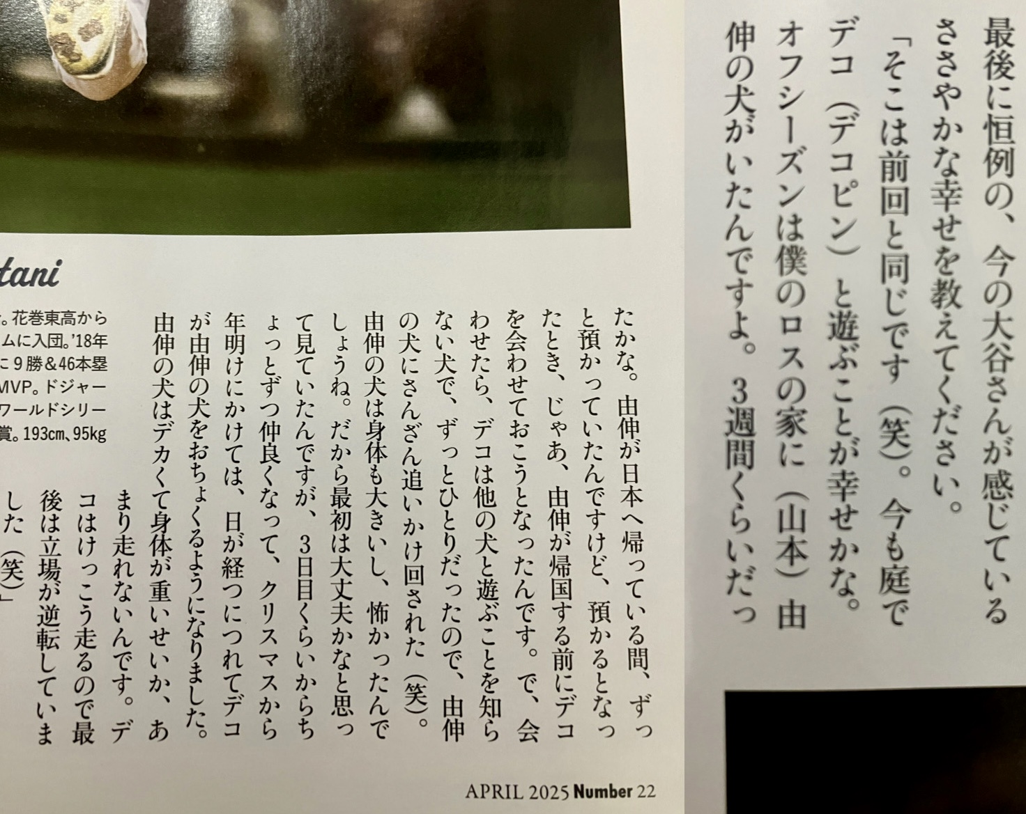 大谷のインタビューは犬好きなの分かってええな