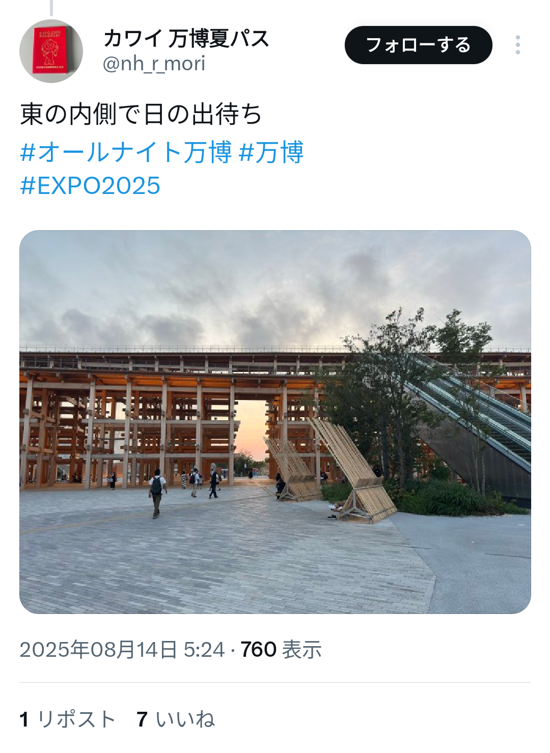 大屋根リングで野宿してみたいわ羨ましい