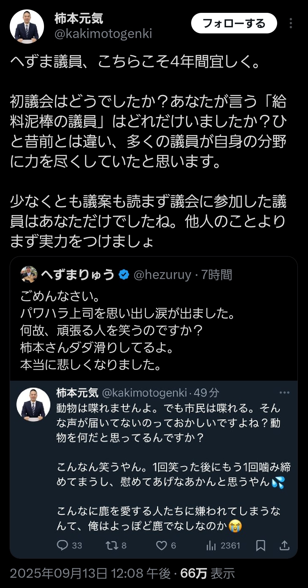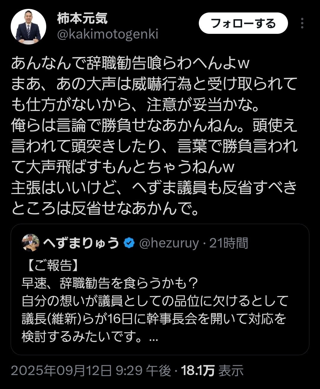 Xだと大量のへずま信者がこの柿本議員を攻撃してるやんけ