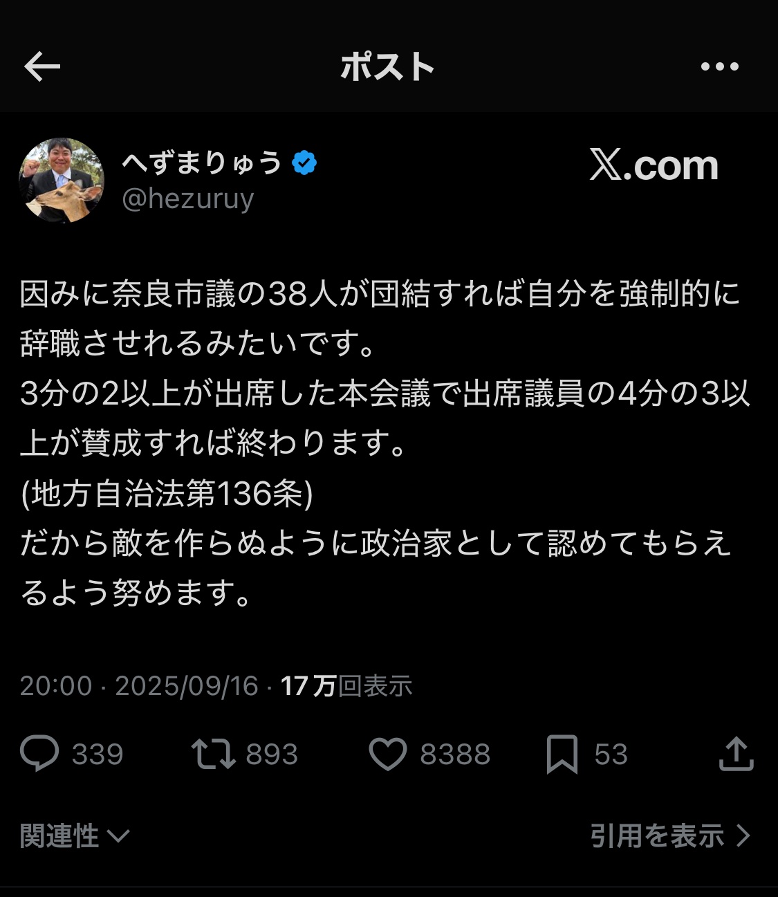 へずまりゅうがクビになったら誰が奈良の鹿を護るんだよ!