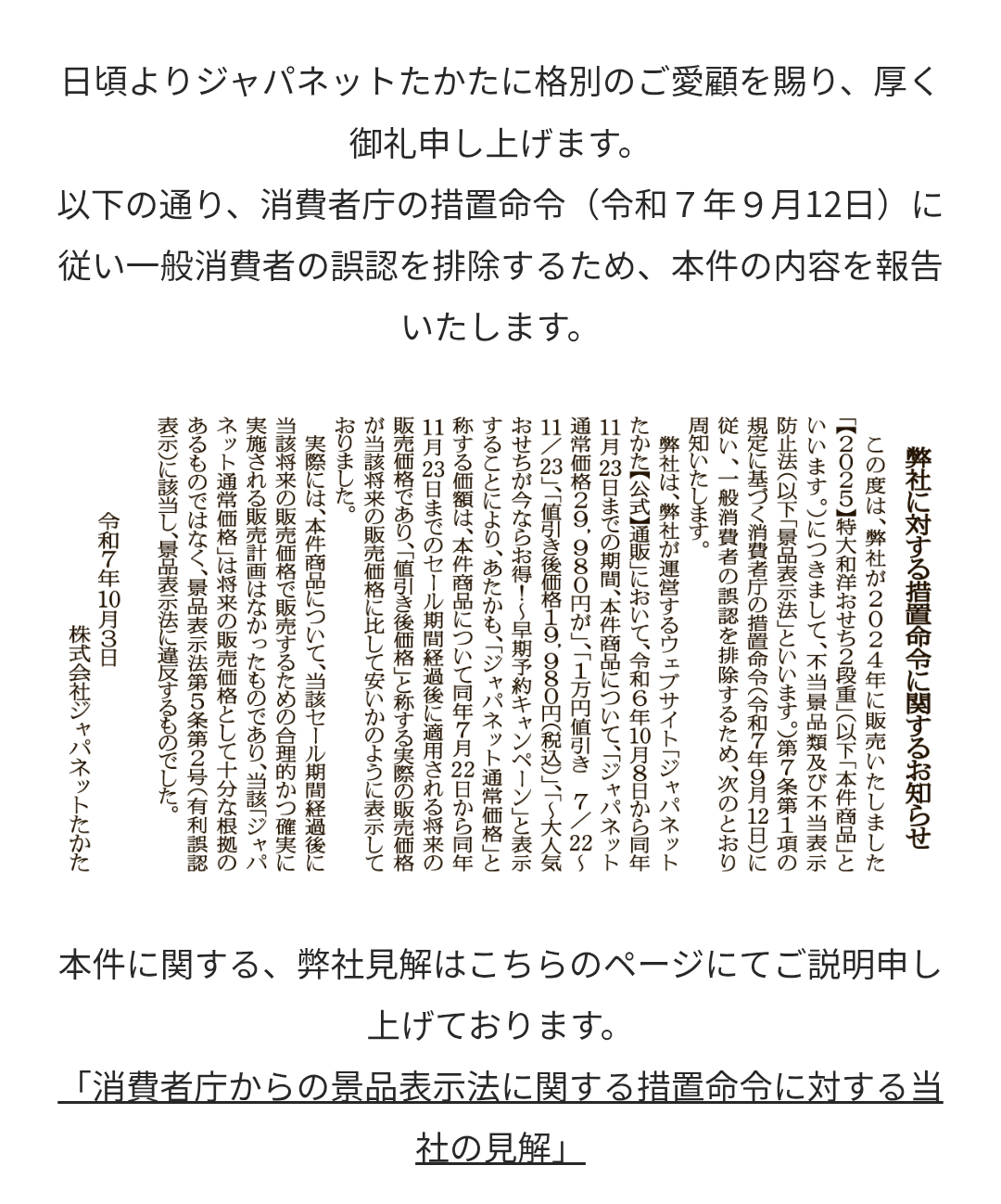 なにかと思ったら販売実績ないくせに二重価格表示してるのがバレて怒られたのか