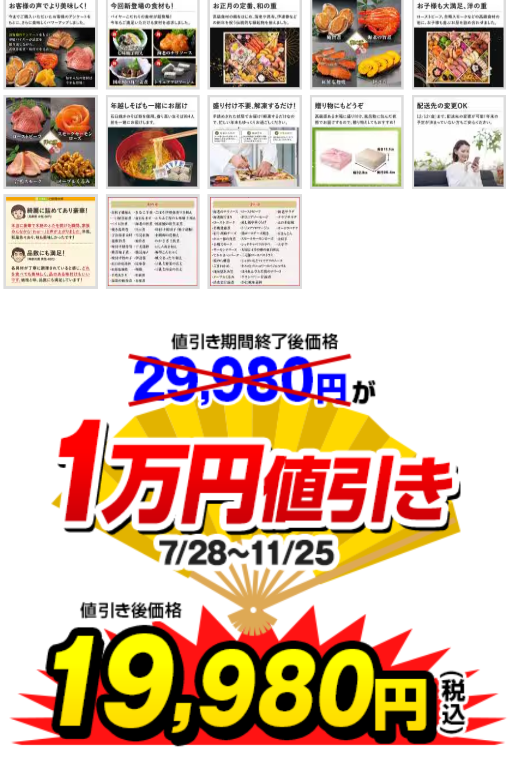 当社は悪くないので今年も昨年と同様の価格表記でおせちを販売中!↓