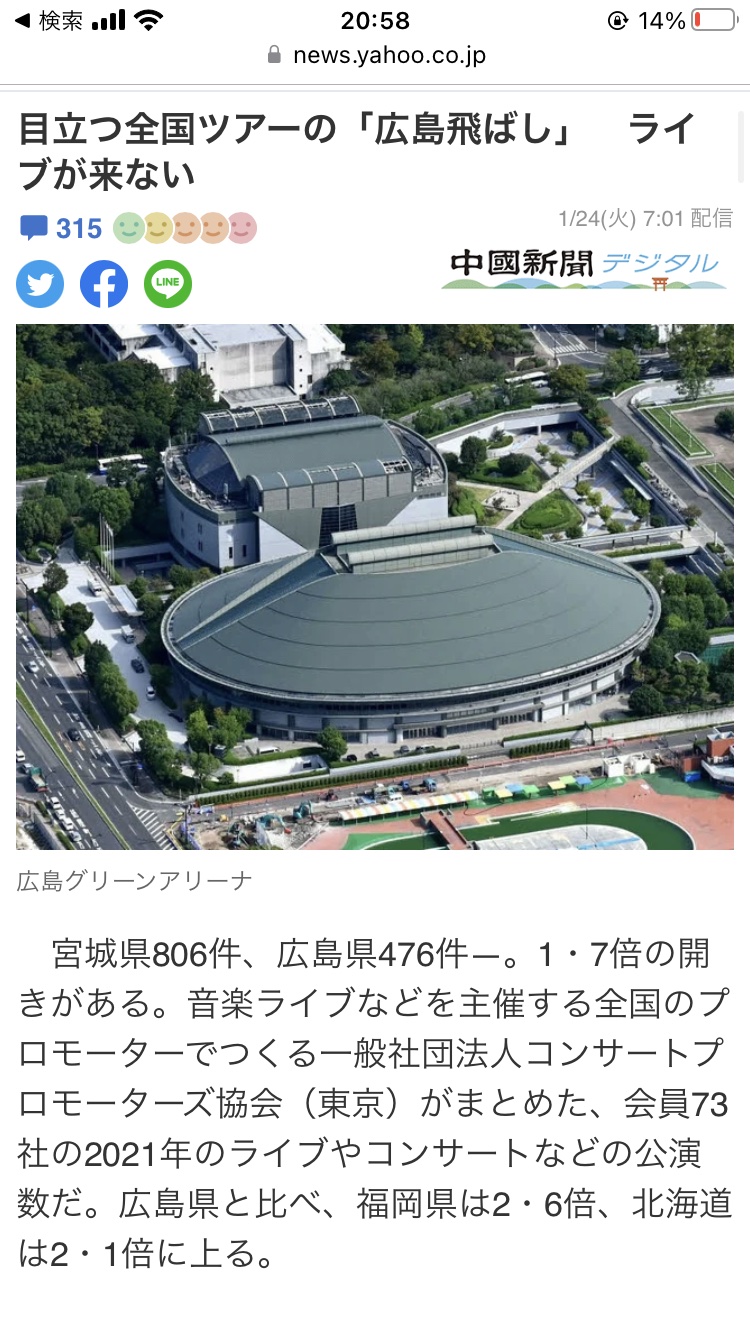 こうしたライブ関係の広島飛ばしの要因はなんや