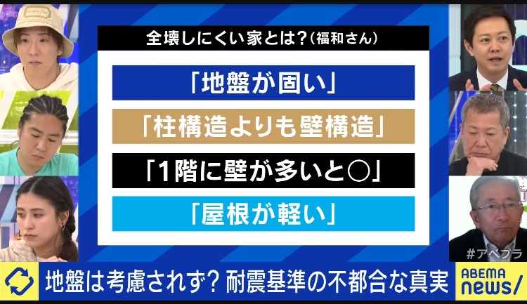 名古屋大学・建築耐震専門家・教授「私は東京には建てません。なぜなら、人が必要以上に集まりすぎているからです。災害の観点で言うと田舎の地震より危険です。どうしてもというなら、土地が低い場所、土地が軟弱な場所は避け、平屋で壁の面積が多く屋根が軽い家を建てます。」