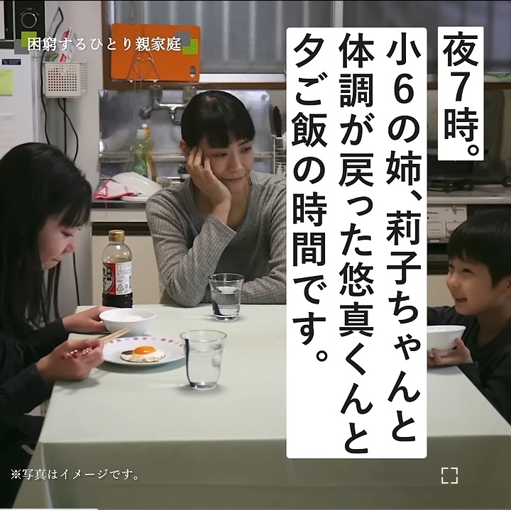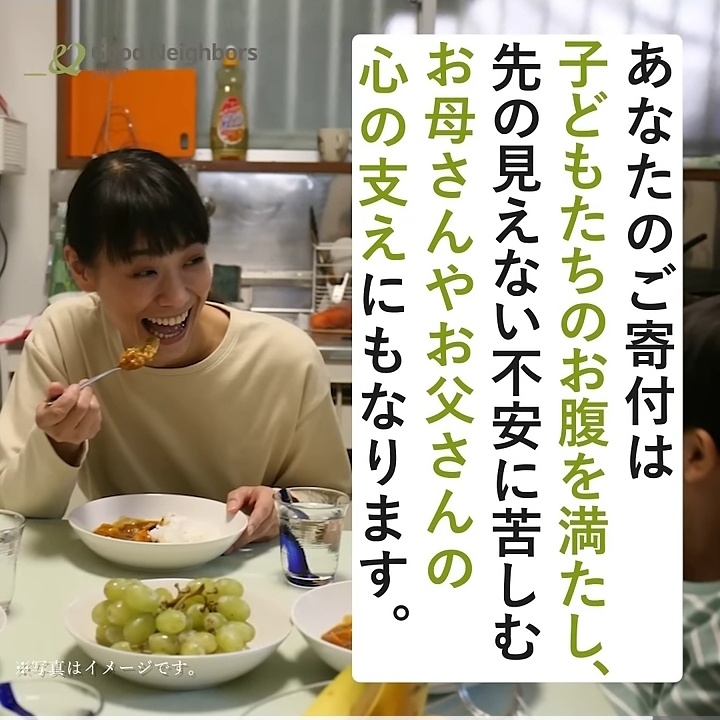 この画像だと構図の関係なのか母親がドアップになってるだけでホームページには子供達も笑顔で飯食ってるぞ