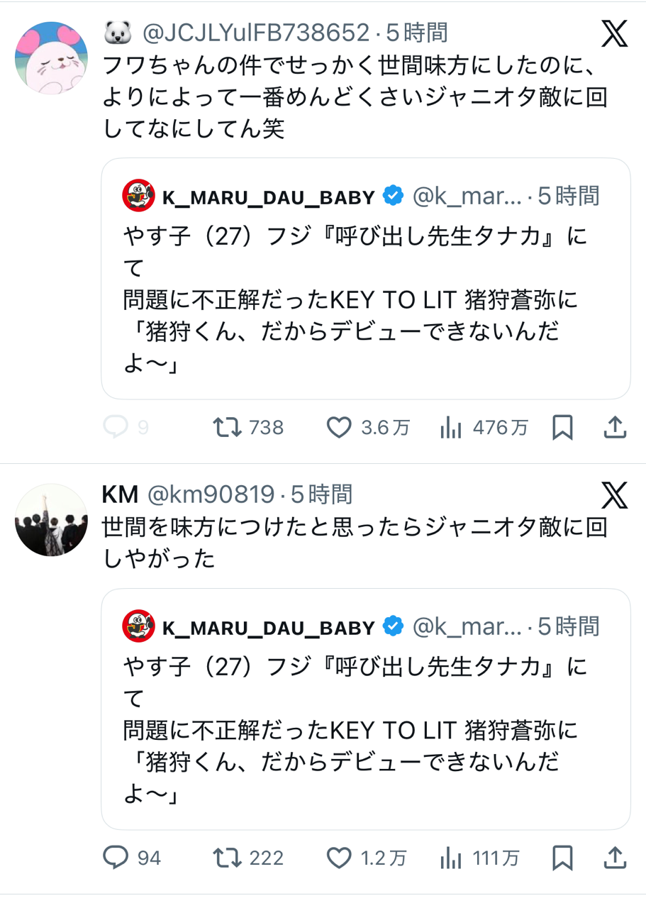 ジャニオタを敵に回したって事はまた世間を味方につけたって事やろ?