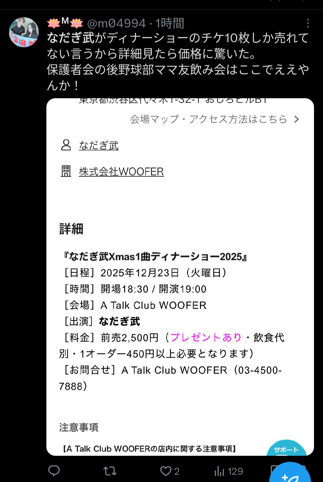 なだぎ武のクリスマスディナーショーに行ってたってちょっと言ってみたい