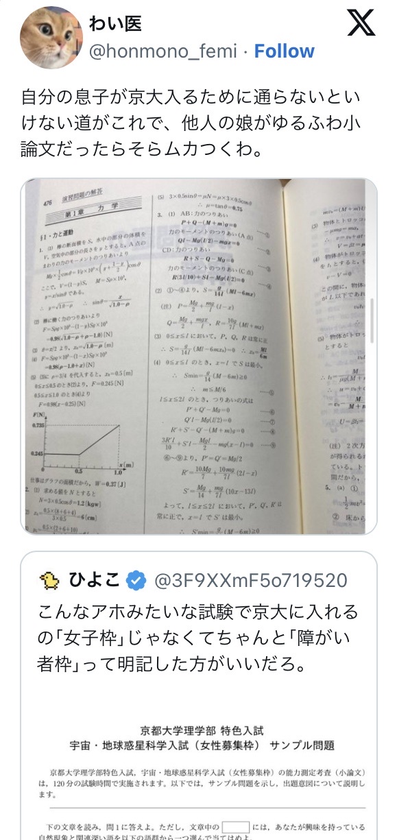 女が数学や物理苦手だから彼女らでも解ける仕様の問題にしただけやろ