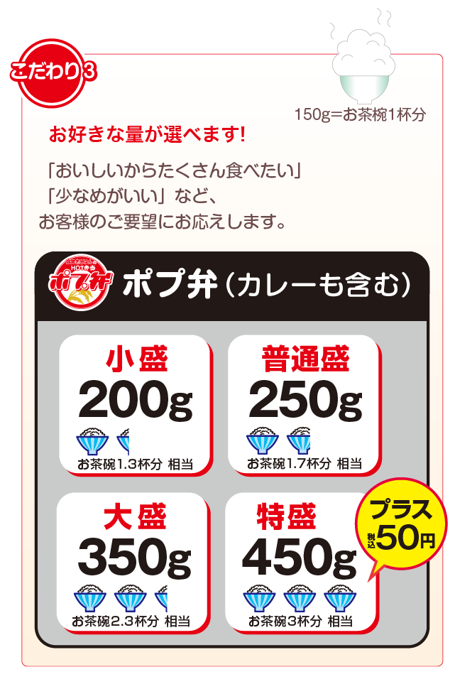 ポプ弁は米を大盛にできるからな